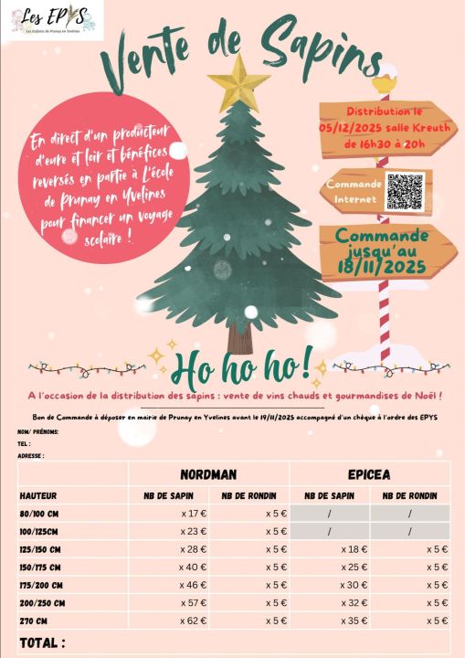 L'association des Epys vous propose une vente de sapins pour financer le voyage scolaire.