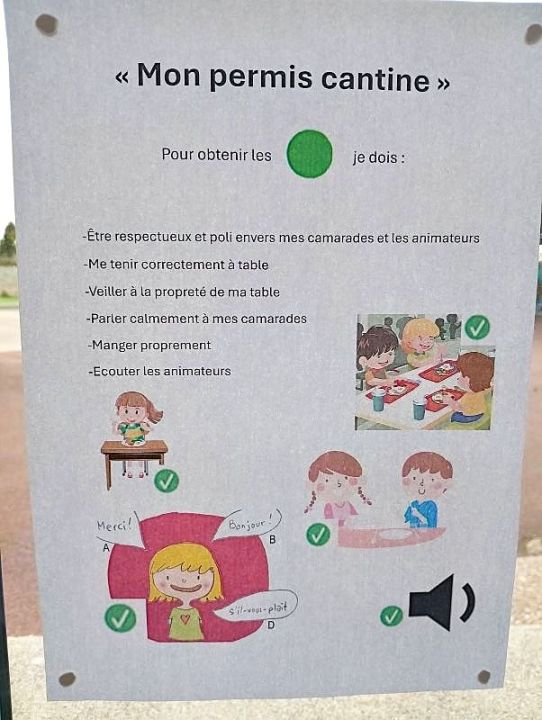 Vous trouverez en PJ le permis à points mis en place sur le temps de la cantine. Pour toute question ou précision, merci de prendre contact avec la Mairie qui gère la cantine et le temps de la pause méridienne.